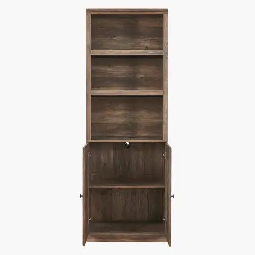 1 Door Bookshelf With USB Port And 3 Open Bookshelf Bookshelves Side Cabinet Storage Shelves, Rustic Brown