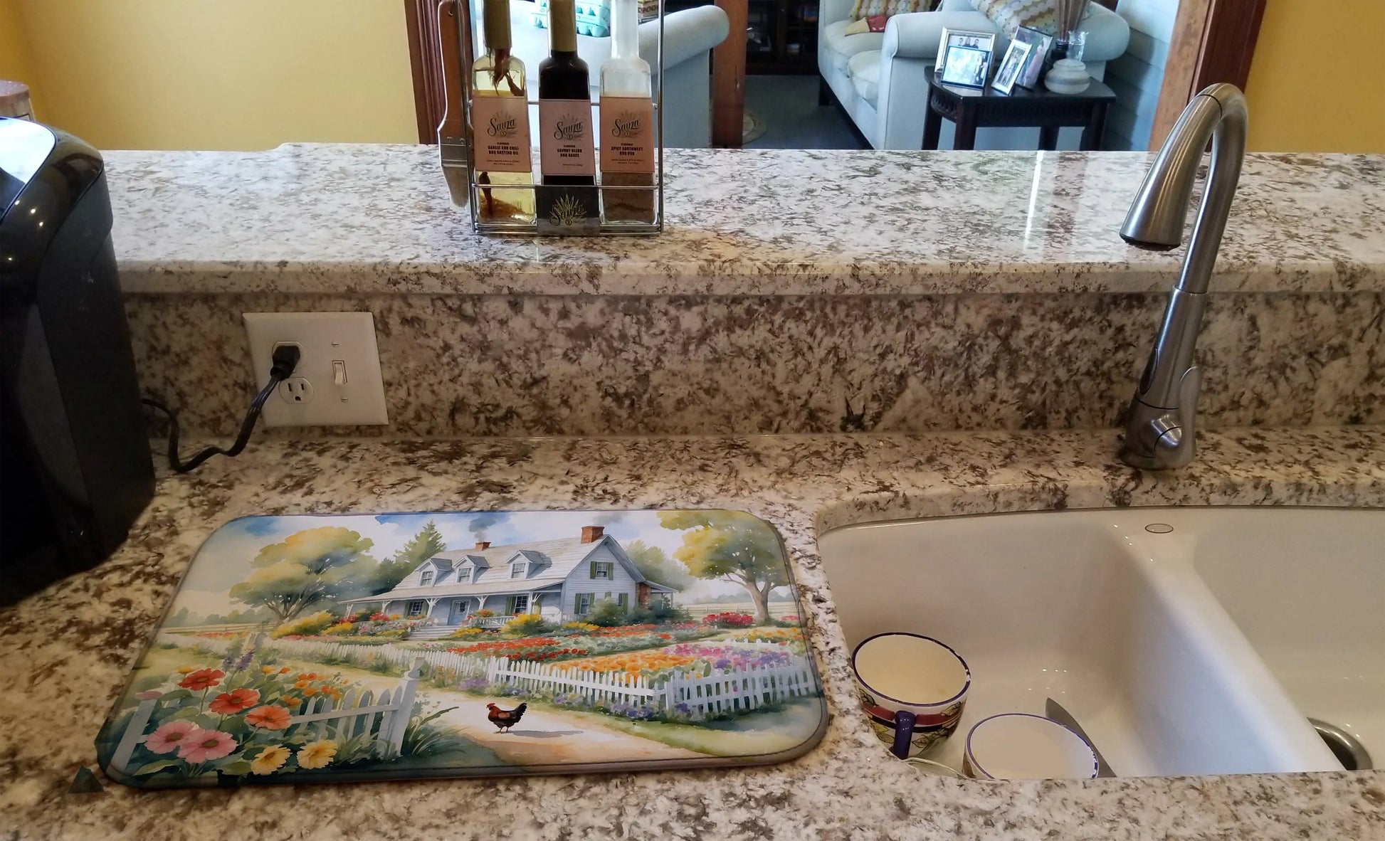 Chicken Farmhouse Garden Dish Drying Mat