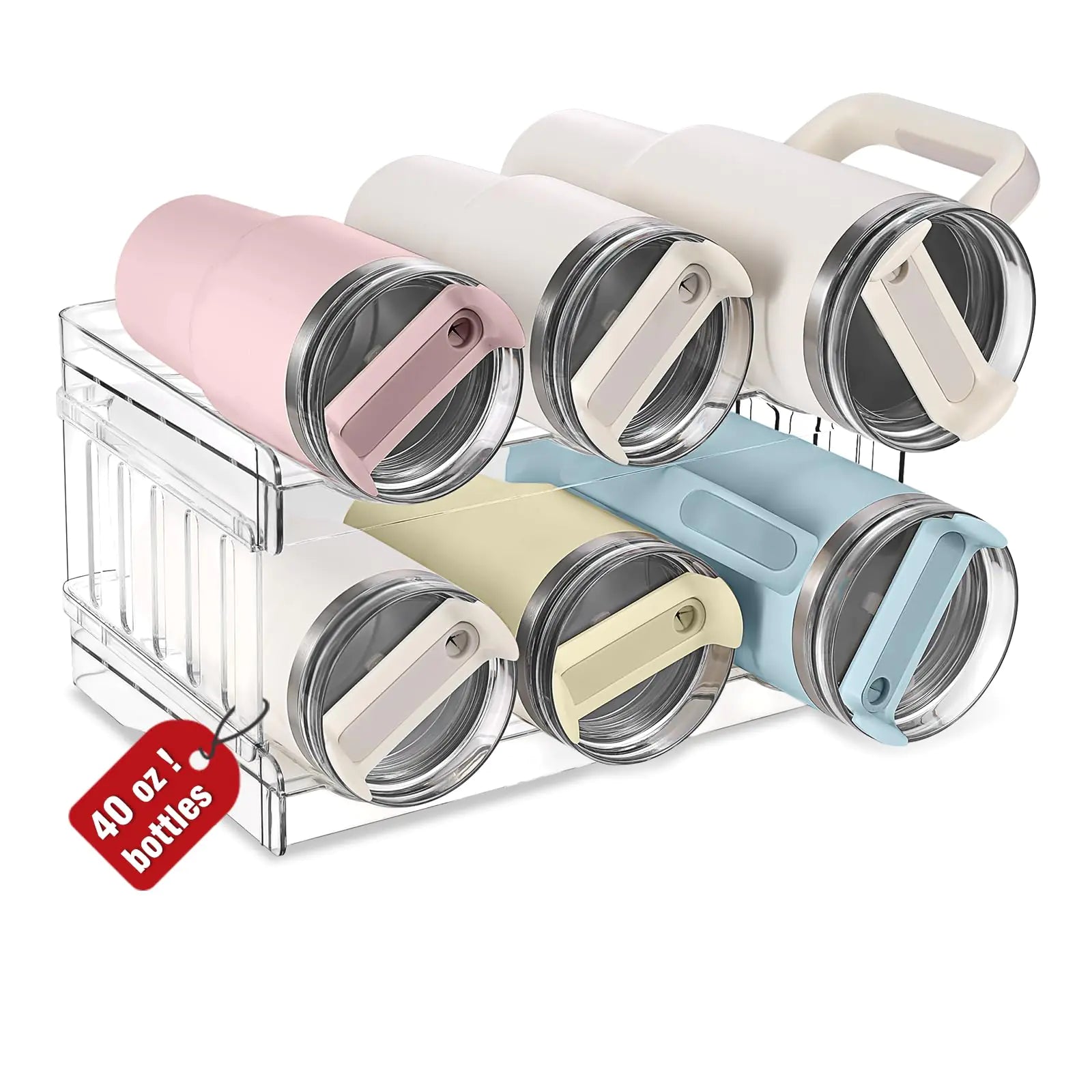 MYJIE Large Water Bottle Organizer for Stanley 40 30 20oz Tumbler Cups Clear Plastic Water Bottle Holder for Stanley Cup Accessories Pantry Kitchen Cabinet Cupboard CountertopHold 6 Bottles